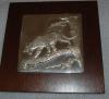 1978. Sterling silver wall sculpture, 7" x 7" mounted on 11 1/4" Philippine Mahogany base. Commissi...