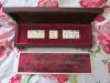 Complete set of three sterling silver stamps in a velvet-lined display.