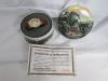 33mm dial wristwatch with leather strap, in decorative storage tin, and with certificate of authent...