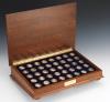 Complete set of 100 miniature sterling silver ingots, displayed in felt-lined presentation case.